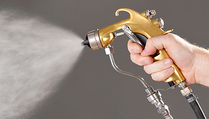 ปืนฉีดน้ำ ถือโดยฝ่ามือ นิ้วหัวแม่มือ ก้อย และแหวน ใช้นิ้วกลางและนิ้วชี้เพื่อเหนี่ยวไก จิตรกรบางคนทำงานเป็นเวลานาน เปลี่ยนวิธีการถือปืนเป็นครั้งคราว บางครั้งพวกเขาใช้แค่นิ้วโป้ง ฝ่ามือ และก้อย และบางครั้ง ใช้นิ้วนางจับปืน ใช้นิ้วกลางและนิ้วชี้เพื่อเหนี่ยวไก นี้บรรเทาความเมื่อยล้าและปรับปรุงประสิทธิภาพแรงงาน